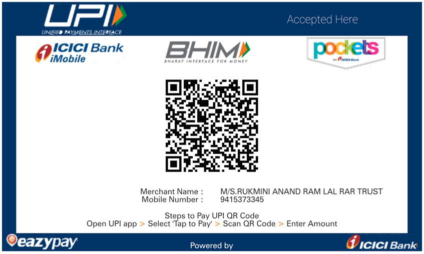 Make payment by scanning any QR code given below. We accept payment from all payment apps.
